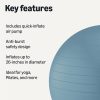 Versatile exercise ball ideal for yoga, core strengthening, low impact exercises, and ergonomic office seating; ideal for home or gym